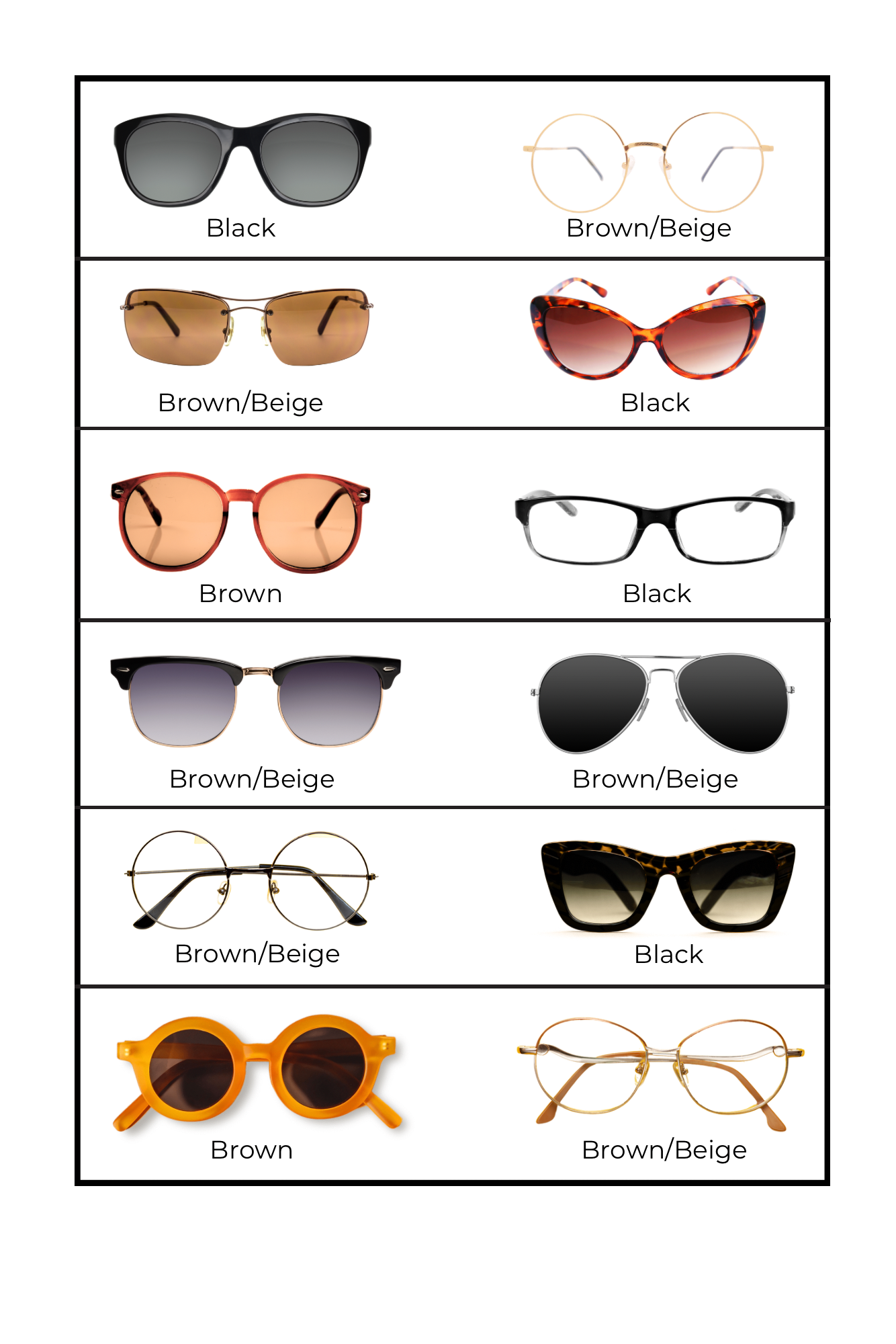 Please utilize this graph as a reference to determine which color would best compliment your glasses.